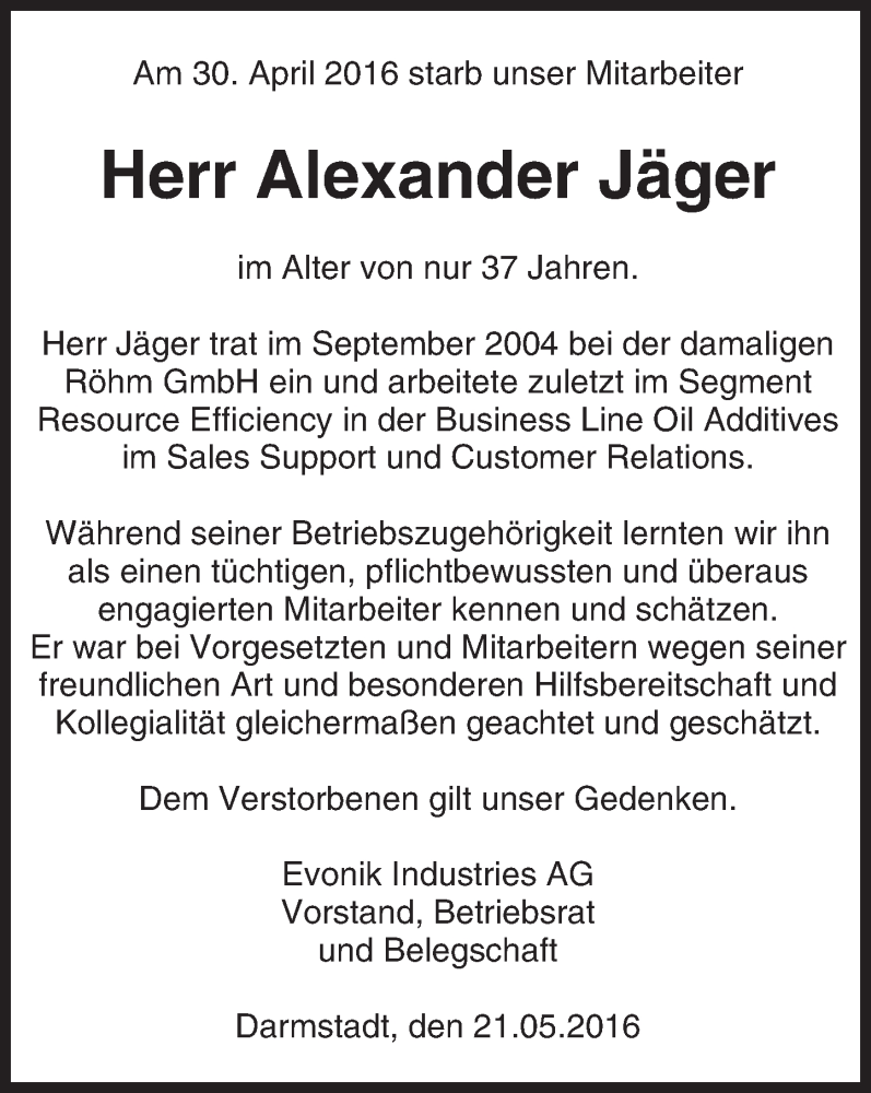 Hier finden Sie alle Traueranzeigen aus der Zeitung, die bisher für Alexander Jäger erschienen sind. Weitere Traueranzeigen, die in der Zeitung erscheinen, werden hier ebenfalls aufgelistet