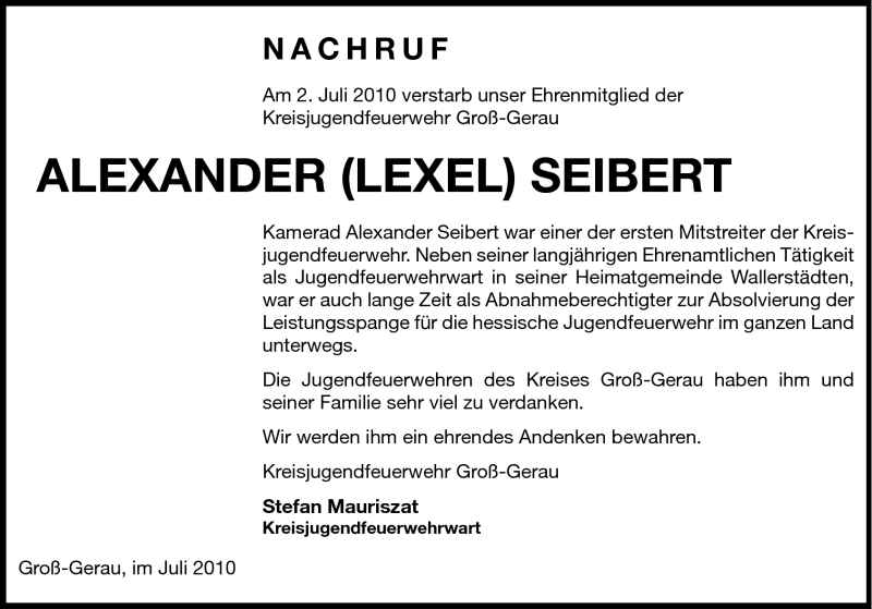Hier finden Sie alle Traueranzeigen aus der Zeitung, die bisher für Alexander (Lexel) Seibert erschienen sind. Weitere Traueranzeigen, die in der Zeitung erscheinen, werden hier ebenfalls aufgelistet