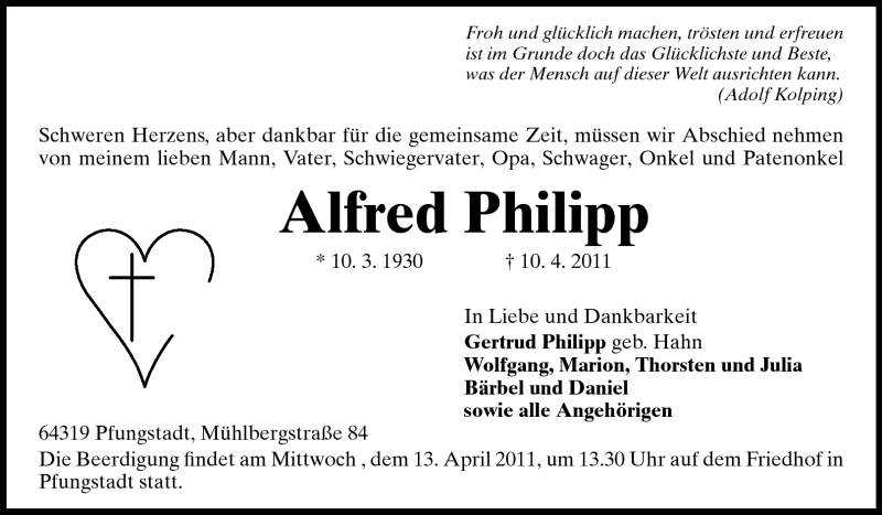 Hier finden Sie alle Traueranzeigen aus der Zeitung, die bisher für Alfred Philipp erschienen sind. Weitere Traueranzeigen, die in der Zeitung erscheinen, werden hier ebenfalls aufgelistet