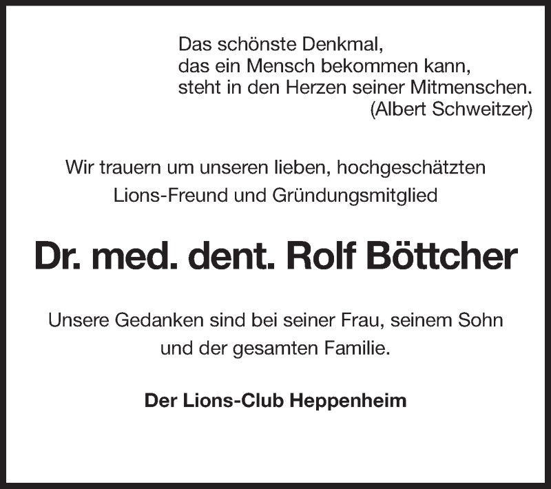 Hier finden Sie alle Traueranzeigen aus der Zeitung, die bisher für Dr. Rolf Böttcher erschienen sind. Weitere Traueranzeigen, die in der Zeitung erscheinen, werden hier ebenfalls aufgelistet