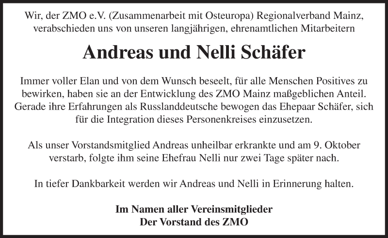 Hier finden Sie alle Traueranzeigen aus der Zeitung, die bisher für Andreas und Nelli Schäfer erschienen sind. Weitere Traueranzeigen, die in der Zeitung erscheinen, werden hier ebenfalls aufgelistet