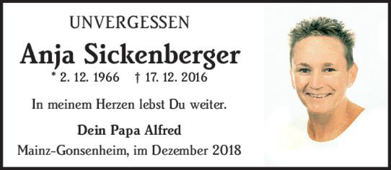 Hier finden Sie alle Traueranzeigen aus der Zeitung, die bisher für Anja Sickenberger erschienen sind. Weitere Traueranzeigen, die in der Zeitung erscheinen, werden hier ebenfalls aufgelistet