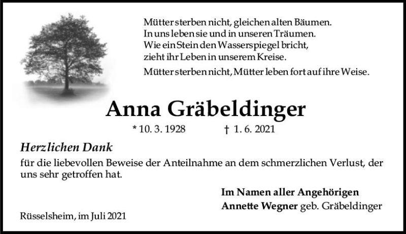 Hier finden Sie alle Traueranzeigen aus der Zeitung, die bisher für Anna Gräbeldinger erschienen sind. Weitere Traueranzeigen, die in der Zeitung erscheinen, werden hier ebenfalls aufgelistet
