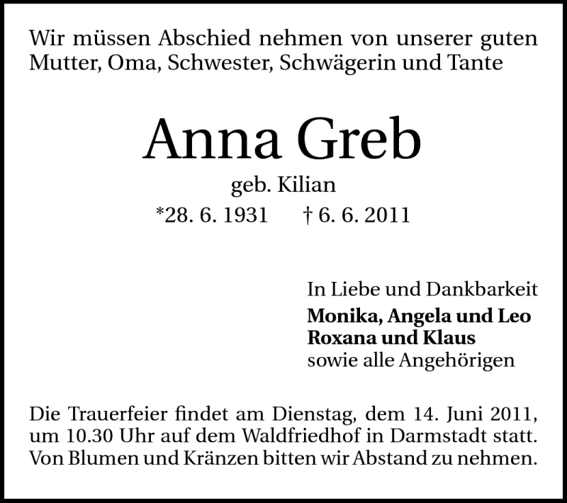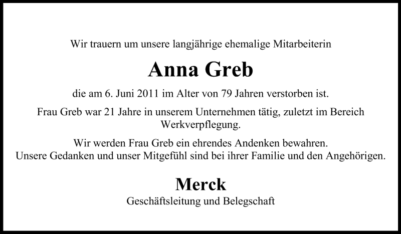Hier finden Sie alle Traueranzeigen aus der Zeitung, die bisher für Anna Greb erschienen sind. Weitere Traueranzeigen, die in der Zeitung erscheinen, werden hier ebenfalls aufgelistet