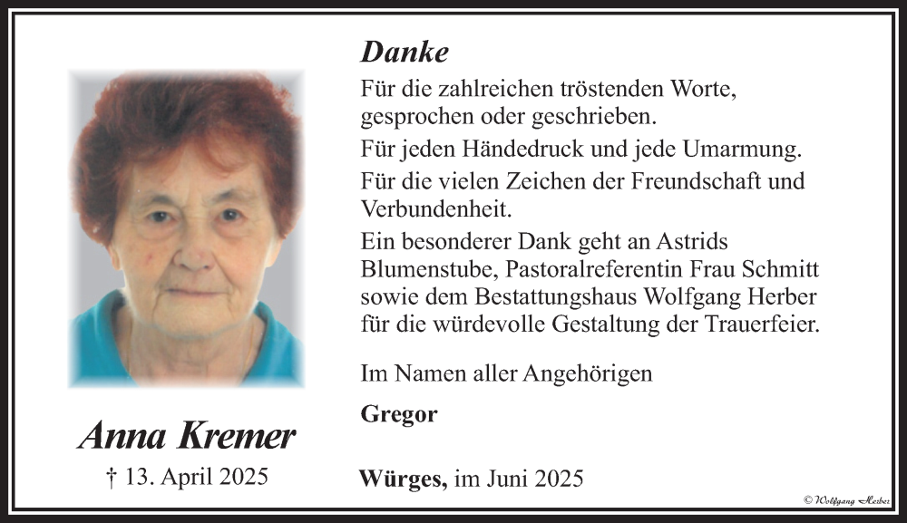 Hier finden Sie alle Traueranzeigen aus der Zeitung, die bisher für Anna Kremer erschienen sind. Weitere Traueranzeigen, die in der Zeitung erscheinen, werden hier ebenfalls aufgelistet