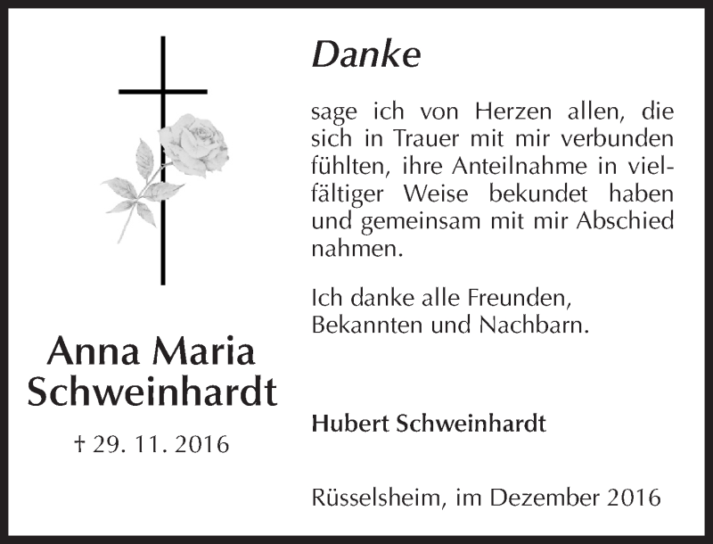 Hier finden Sie alle Traueranzeigen aus der Zeitung, die bisher für Anna Maria Schweinhardt erschienen sind. Weitere Traueranzeigen, die in der Zeitung erscheinen, werden hier ebenfalls aufgelistet