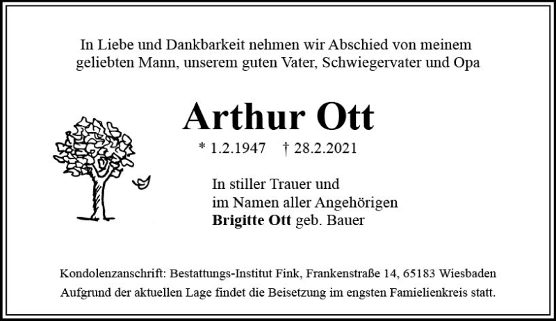 Hier finden Sie alle Traueranzeigen aus der Zeitung, die bisher für Arthur Ott erschienen sind. Weitere Traueranzeigen, die in der Zeitung erscheinen, werden hier ebenfalls aufgelistet