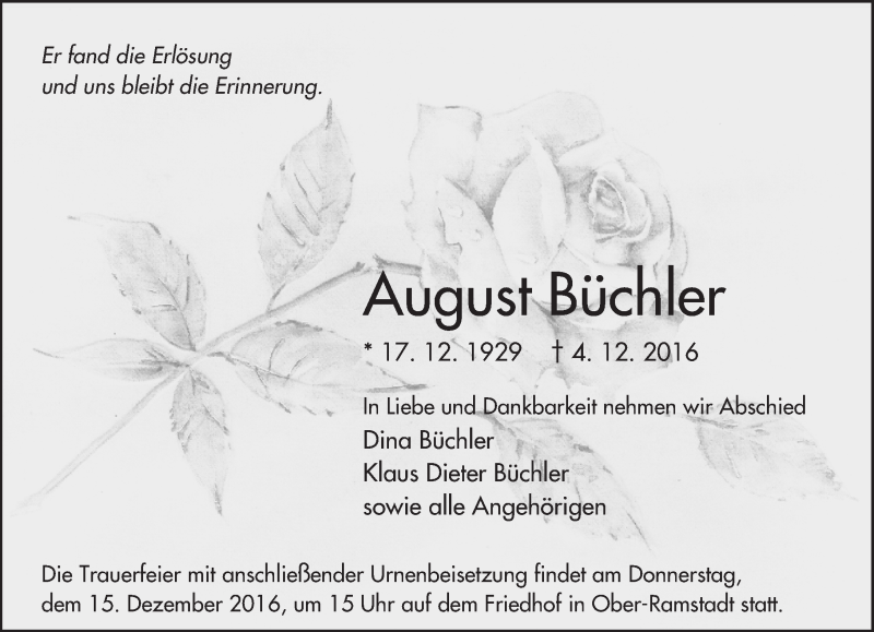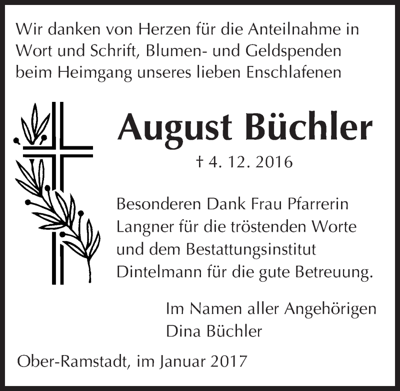 Hier finden Sie alle Traueranzeigen aus der Zeitung, die bisher für August Büchler erschienen sind. Weitere Traueranzeigen, die in der Zeitung erscheinen, werden hier ebenfalls aufgelistet