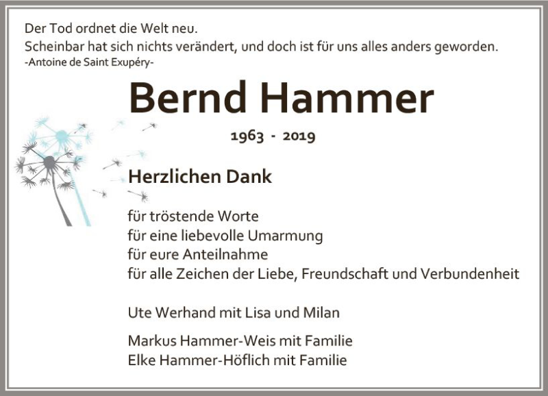 Hier finden Sie alle Traueranzeigen aus der Zeitung, die bisher für Bernd Hammer erschienen sind. Weitere Traueranzeigen, die in der Zeitung erscheinen, werden hier ebenfalls aufgelistet