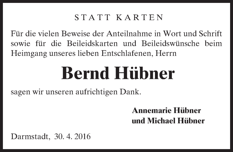 Hier finden Sie alle Traueranzeigen aus der Zeitung, die bisher für Bernd Hübner erschienen sind. Weitere Traueranzeigen, die in der Zeitung erscheinen, werden hier ebenfalls aufgelistet
