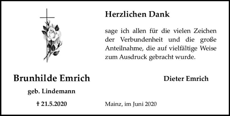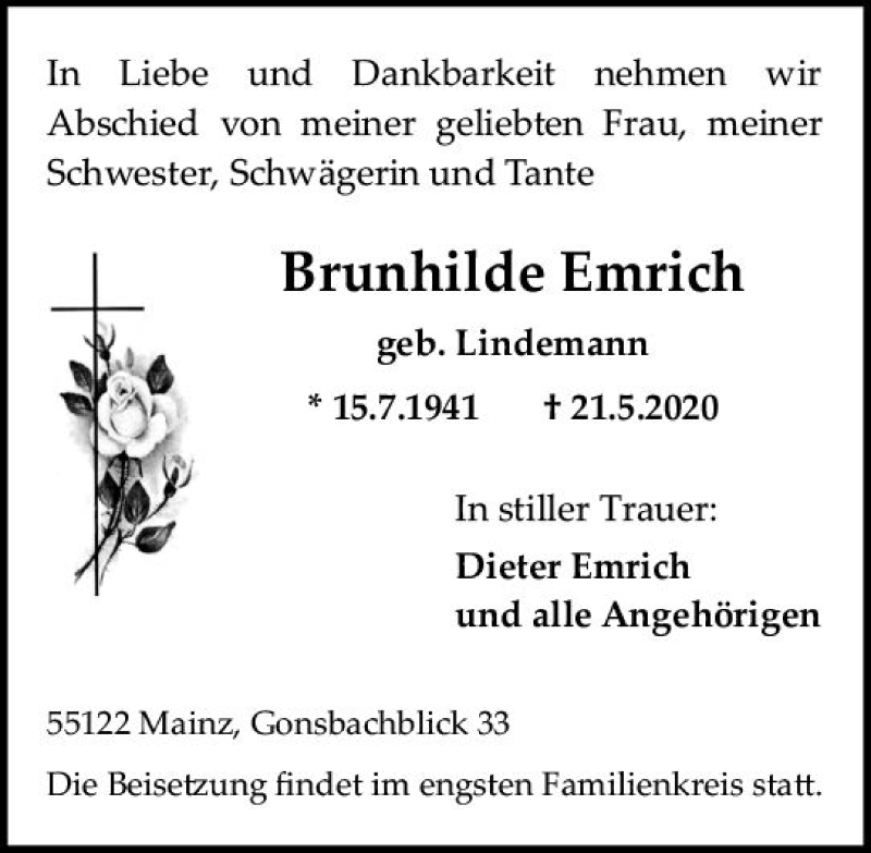 Hier finden Sie alle Traueranzeigen aus der Zeitung, die bisher für Brunhilde Emrich erschienen sind. Weitere Traueranzeigen, die in der Zeitung erscheinen, werden hier ebenfalls aufgelistet
