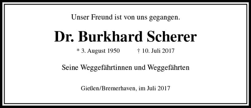 Hier finden Sie alle Traueranzeigen aus der Zeitung, die bisher für Burkhard Scherer erschienen sind. Weitere Traueranzeigen, die in der Zeitung erscheinen, werden hier ebenfalls aufgelistet