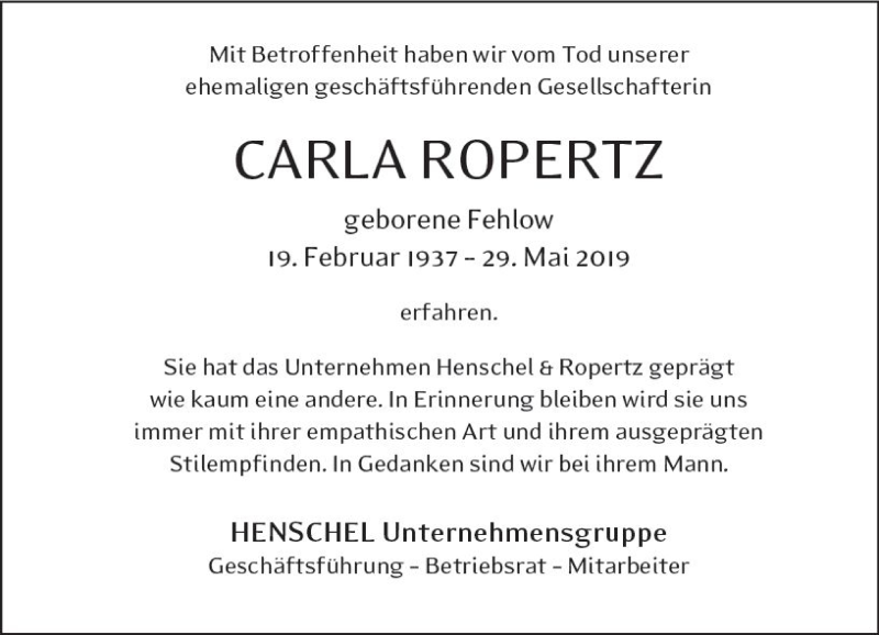 Hier finden Sie alle Traueranzeigen aus der Zeitung, die bisher für Carla Ropertz erschienen sind. Weitere Traueranzeigen, die in der Zeitung erscheinen, werden hier ebenfalls aufgelistet