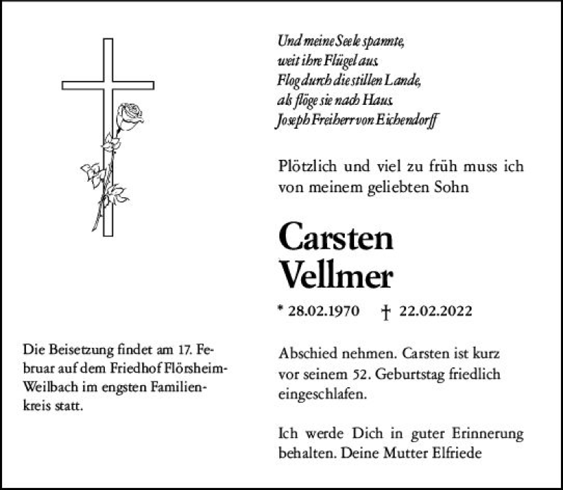 Hier finden Sie alle Traueranzeigen aus der Zeitung, die bisher für Carsten Vellmer erschienen sind. Weitere Traueranzeigen, die in der Zeitung erscheinen, werden hier ebenfalls aufgelistet
