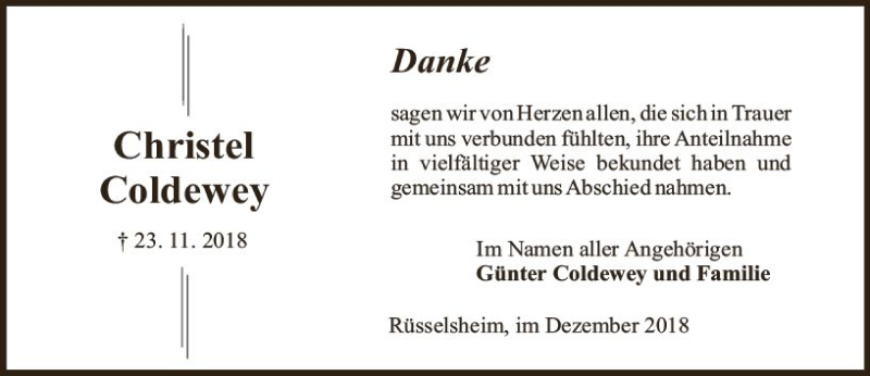 Hier finden Sie alle Traueranzeigen aus der Zeitung, die bisher für Christel Coldewey erschienen sind. Weitere Traueranzeigen, die in der Zeitung erscheinen, werden hier ebenfalls aufgelistet