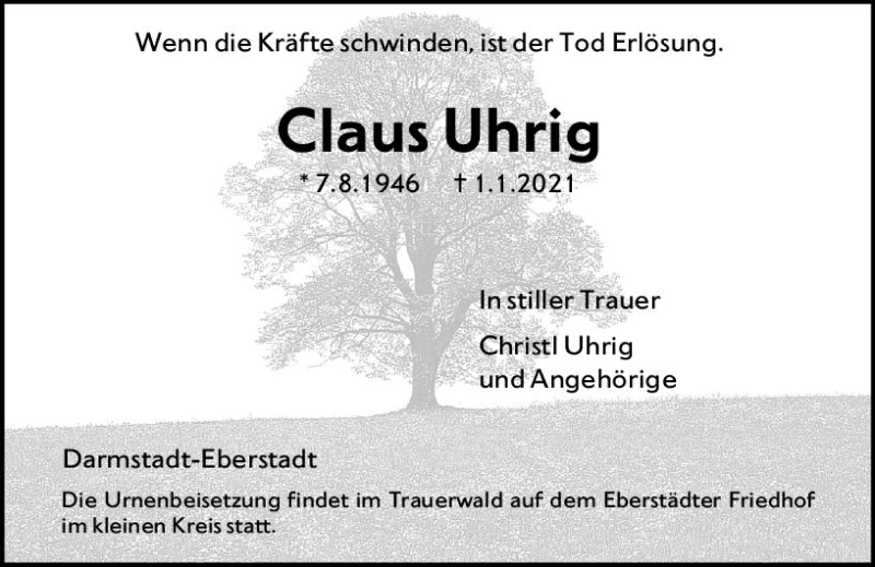 Hier finden Sie alle Traueranzeigen aus der Zeitung, die bisher für Claus Uhrig erschienen sind. Weitere Traueranzeigen, die in der Zeitung erscheinen, werden hier ebenfalls aufgelistet