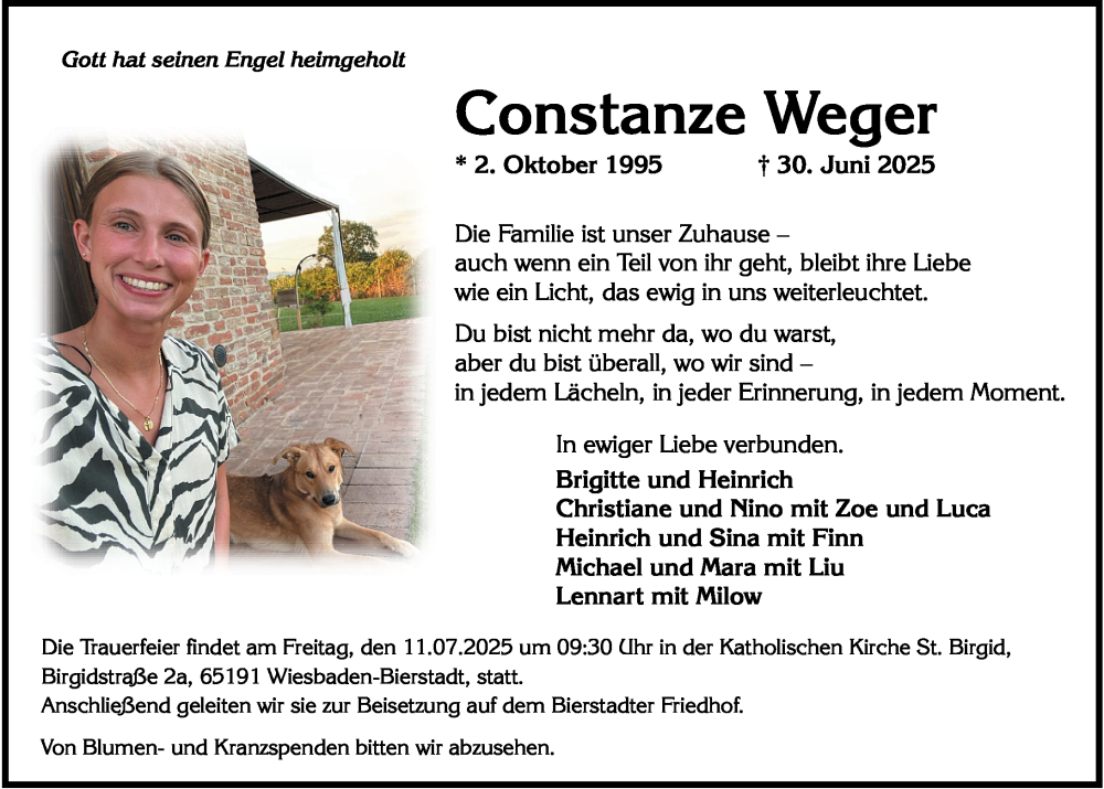 Hier finden Sie alle Traueranzeigen aus der Zeitung, die bisher für Constanze Weger erschienen sind. Weitere Traueranzeigen, die in der Zeitung erscheinen, werden hier ebenfalls aufgelistet