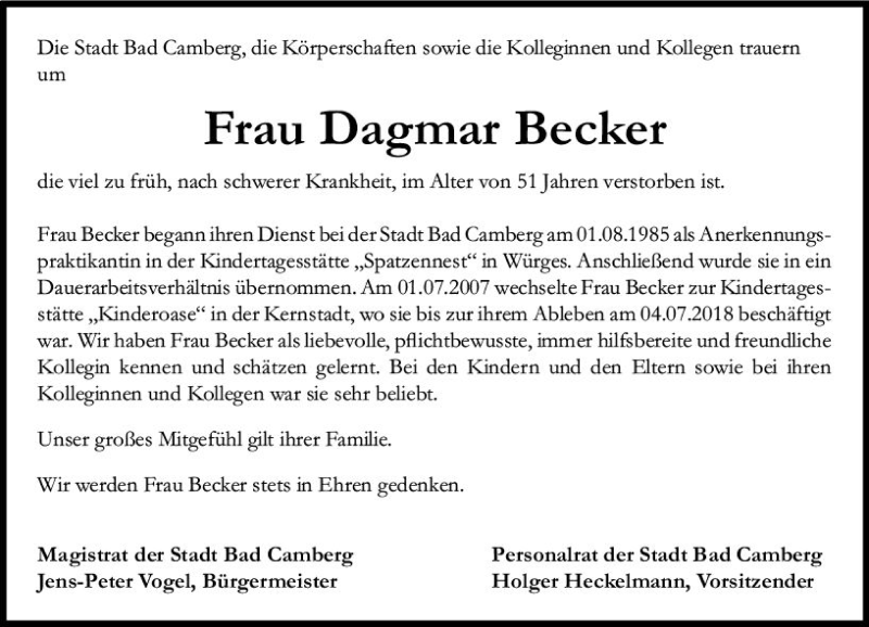 Hier finden Sie alle Traueranzeigen aus der Zeitung, die bisher für Dagmar Becker erschienen sind. Weitere Traueranzeigen, die in der Zeitung erscheinen, werden hier ebenfalls aufgelistet