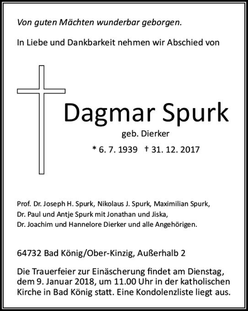 Hier finden Sie alle Traueranzeigen aus der Zeitung, die bisher für Dagmar Spurk erschienen sind. Weitere Traueranzeigen, die in der Zeitung erscheinen, werden hier ebenfalls aufgelistet