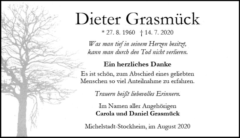 Hier finden Sie alle Traueranzeigen aus der Zeitung, die bisher für Dieter Grasmück erschienen sind. Weitere Traueranzeigen, die in der Zeitung erscheinen, werden hier ebenfalls aufgelistet