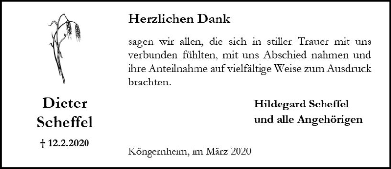 Hier finden Sie alle Traueranzeigen aus der Zeitung, die bisher für Dieter Scheffel erschienen sind. Weitere Traueranzeigen, die in der Zeitung erscheinen, werden hier ebenfalls aufgelistet