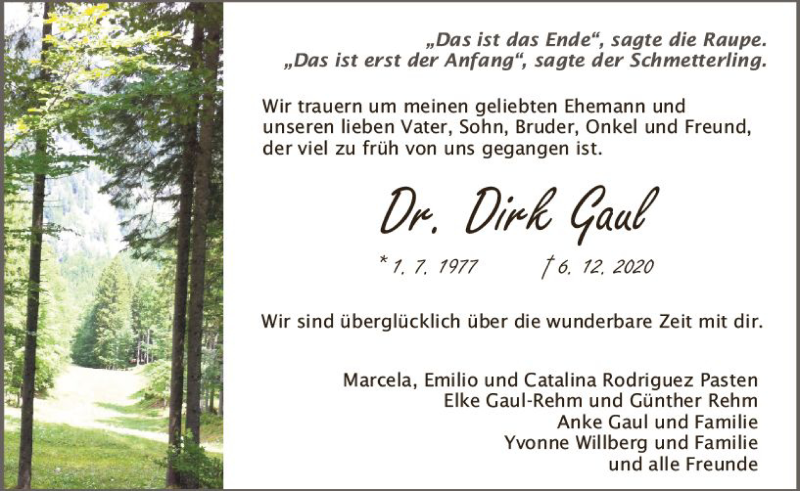 Hier finden Sie alle Traueranzeigen aus der Zeitung, die bisher für Dirk Gaul erschienen sind. Weitere Traueranzeigen, die in der Zeitung erscheinen, werden hier ebenfalls aufgelistet