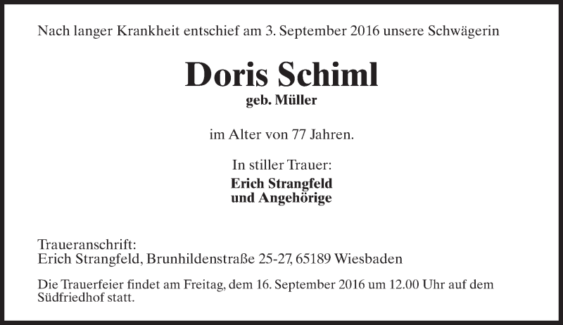 Hier finden Sie alle Traueranzeigen aus der Zeitung, die bisher für Doris Schiml erschienen sind. Weitere Traueranzeigen, die in der Zeitung erscheinen, werden hier ebenfalls aufgelistet