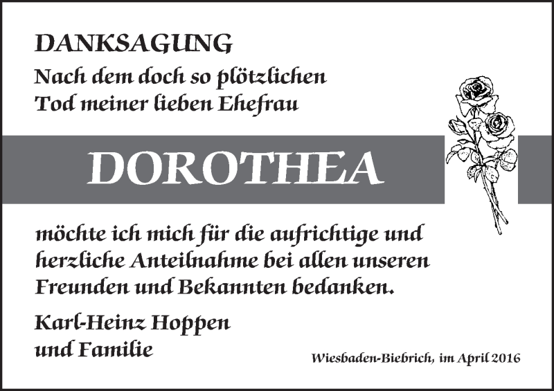 Hier finden Sie alle Traueranzeigen aus der Zeitung, die bisher für Dorothea erschienen sind. Weitere Traueranzeigen, die in der Zeitung erscheinen, werden hier ebenfalls aufgelistet
