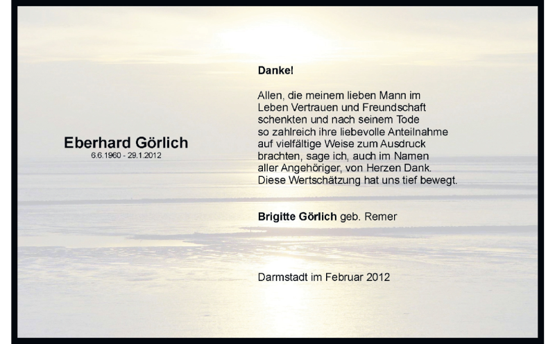 Hier finden Sie alle Traueranzeigen aus der Zeitung, die bisher für Eberhard Görlich erschienen sind. Weitere Traueranzeigen, die in der Zeitung erscheinen, werden hier ebenfalls aufgelistet