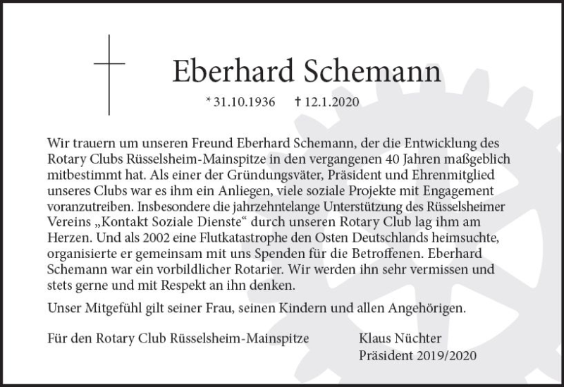 Hier finden Sie alle Traueranzeigen aus der Zeitung, die bisher für Eberhard Schemann erschienen sind. Weitere Traueranzeigen, die in der Zeitung erscheinen, werden hier ebenfalls aufgelistet