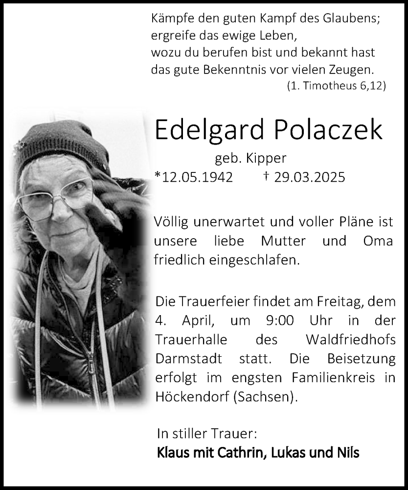 Hier finden Sie alle Traueranzeigen aus der Zeitung, die bisher für Edelgard Polaczek erschienen sind. Weitere Traueranzeigen, die in der Zeitung erscheinen, werden hier ebenfalls aufgelistet