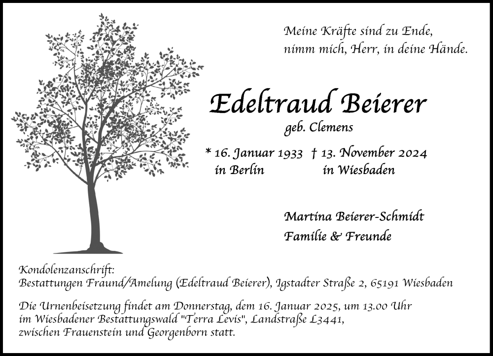 Hier finden Sie alle Traueranzeigen aus der Zeitung, die bisher für Edeltraud Beierer erschienen sind. Weitere Traueranzeigen, die in der Zeitung erscheinen, werden hier ebenfalls aufgelistet