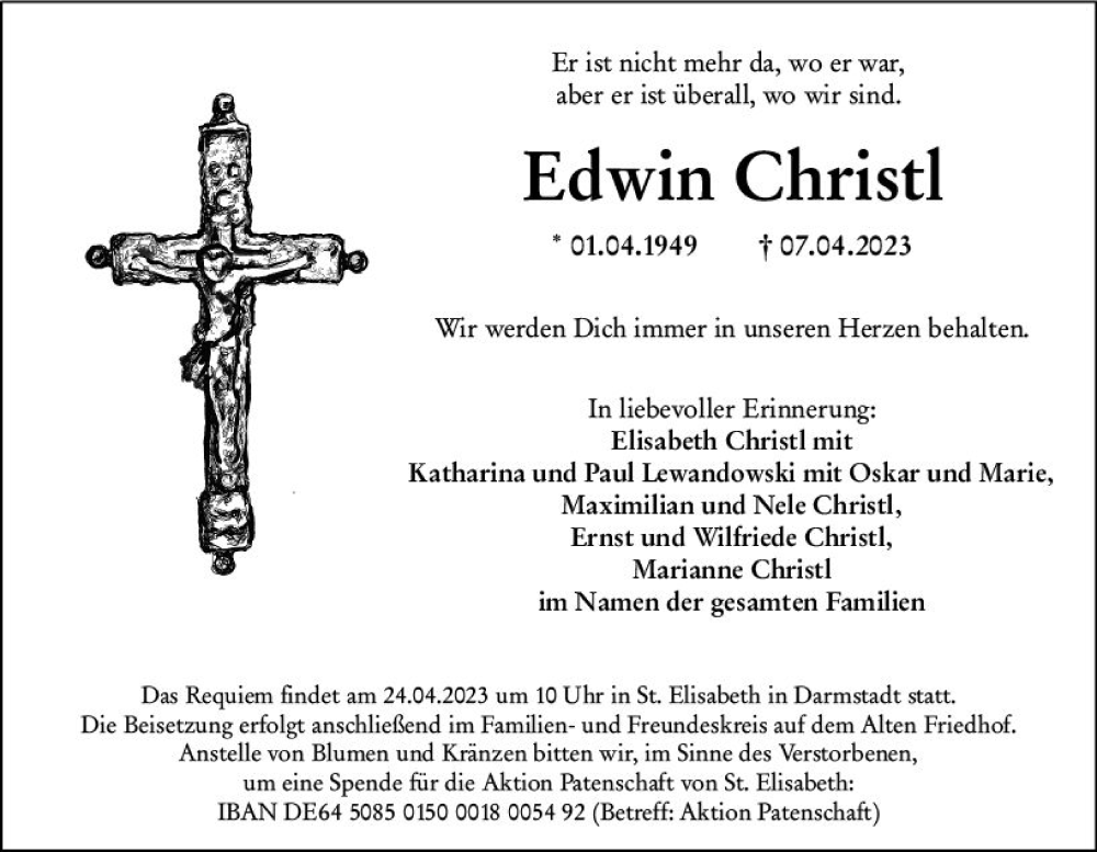 Hier finden Sie alle Traueranzeigen aus der Zeitung, die bisher für Edwin Christi erschienen sind. Weitere Traueranzeigen, die in der Zeitung erscheinen, werden hier ebenfalls aufgelistet