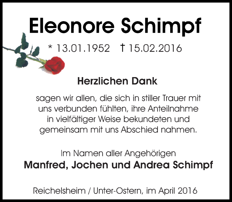 Hier finden Sie alle Traueranzeigen aus der Zeitung, die bisher für Eleonore Schimpf erschienen sind. Weitere Traueranzeigen, die in der Zeitung erscheinen, werden hier ebenfalls aufgelistet