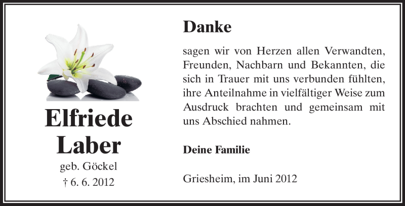 Hier finden Sie alle Traueranzeigen aus der Zeitung, die bisher für Elfriede Laber erschienen sind. Weitere Traueranzeigen, die in der Zeitung erscheinen, werden hier ebenfalls aufgelistet