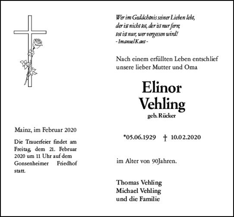 Hier finden Sie alle Traueranzeigen aus der Zeitung, die bisher für Elinor Vehling erschienen sind. Weitere Traueranzeigen, die in der Zeitung erscheinen, werden hier ebenfalls aufgelistet