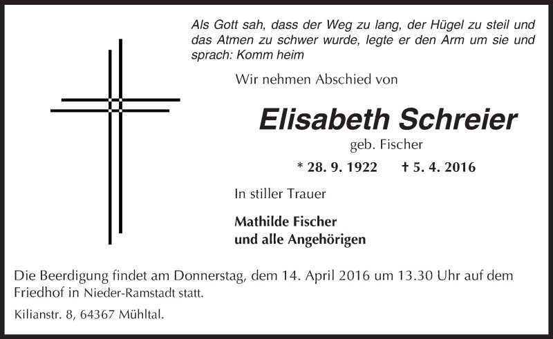 Hier finden Sie alle Traueranzeigen aus der Zeitung, die bisher für Elisabeth Schreier erschienen sind. Weitere Traueranzeigen, die in der Zeitung erscheinen, werden hier ebenfalls aufgelistet