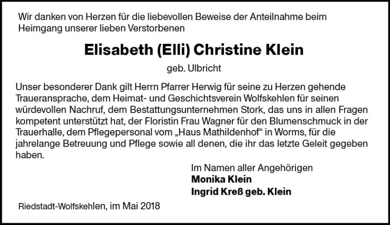Hier finden Sie alle Traueranzeigen aus der Zeitung, die bisher für Elisabeth Christine Klein erschienen sind. Weitere Traueranzeigen, die in der Zeitung erscheinen, werden hier ebenfalls aufgelistet