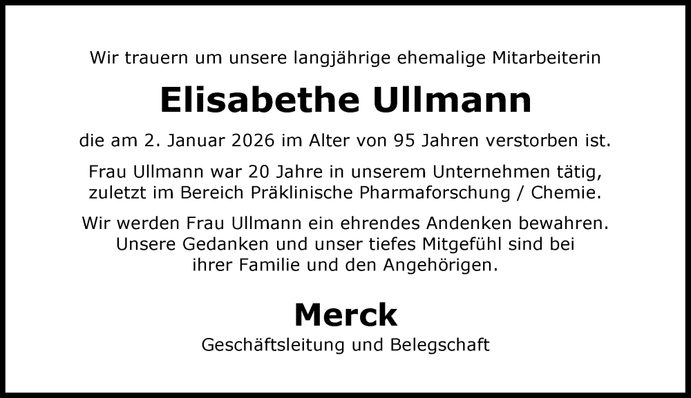 Hier finden Sie alle Traueranzeigen aus der Zeitung, die bisher für Elisabethe Ullmann erschienen sind. Weitere Traueranzeigen, die in der Zeitung erscheinen, werden hier ebenfalls aufgelistet