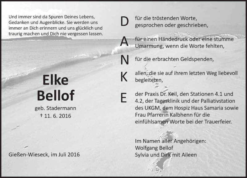 Hier finden Sie alle Traueranzeigen aus der Zeitung, die bisher für Elke Bellof erschienen sind. Weitere Traueranzeigen, die in der Zeitung erscheinen, werden hier ebenfalls aufgelistet