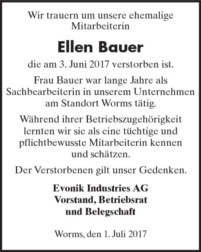 Hier finden Sie alle Traueranzeigen aus der Zeitung, die bisher für Ellen Bauer erschienen sind. Weitere Traueranzeigen, die in der Zeitung erscheinen, werden hier ebenfalls aufgelistet