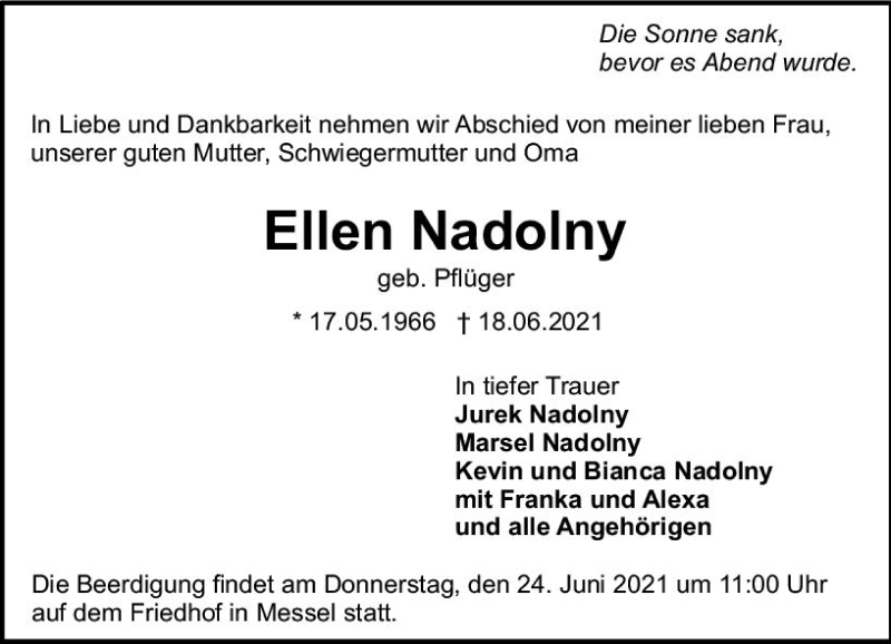 Hier finden Sie alle Traueranzeigen aus der Zeitung, die bisher für Ellen Nadolny erschienen sind. Weitere Traueranzeigen, die in der Zeitung erscheinen, werden hier ebenfalls aufgelistet
