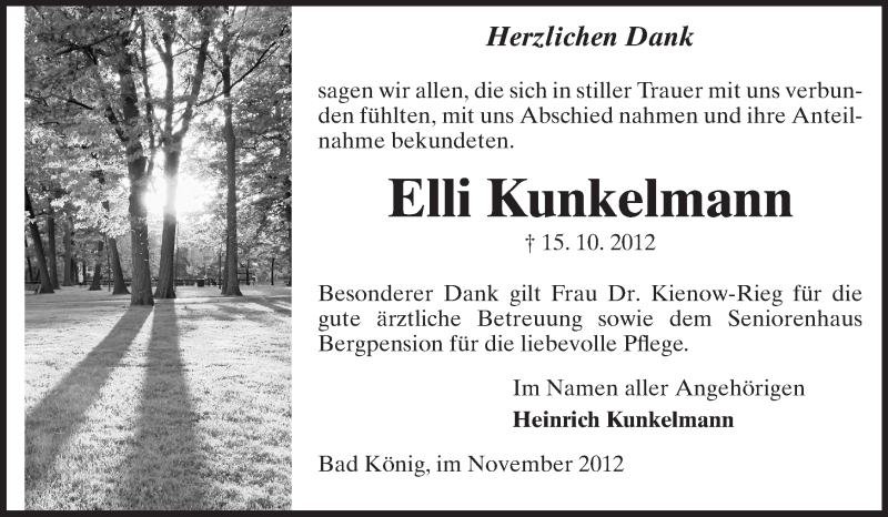 Hier finden Sie alle Traueranzeigen aus der Zeitung, die bisher für Elli Kunkelmann erschienen sind. Weitere Traueranzeigen, die in der Zeitung erscheinen, werden hier ebenfalls aufgelistet