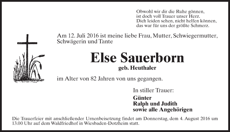 Hier finden Sie alle Traueranzeigen aus der Zeitung, die bisher für Else Sauerborn erschienen sind. Weitere Traueranzeigen, die in der Zeitung erscheinen, werden hier ebenfalls aufgelistet