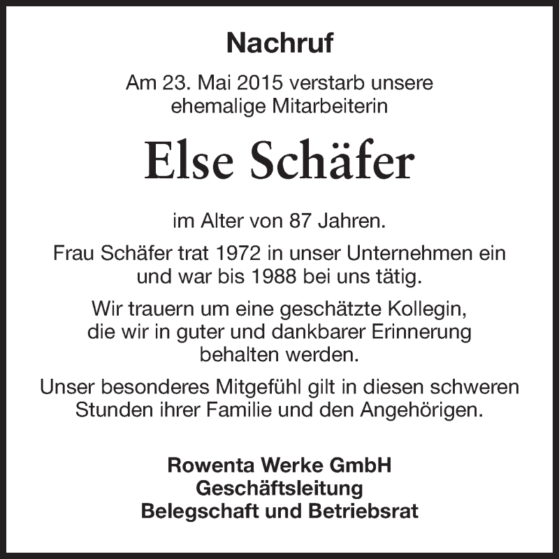 Hier finden Sie alle Traueranzeigen aus der Zeitung, die bisher für Else Schäfer erschienen sind. Weitere Traueranzeigen, die in der Zeitung erscheinen, werden hier ebenfalls aufgelistet