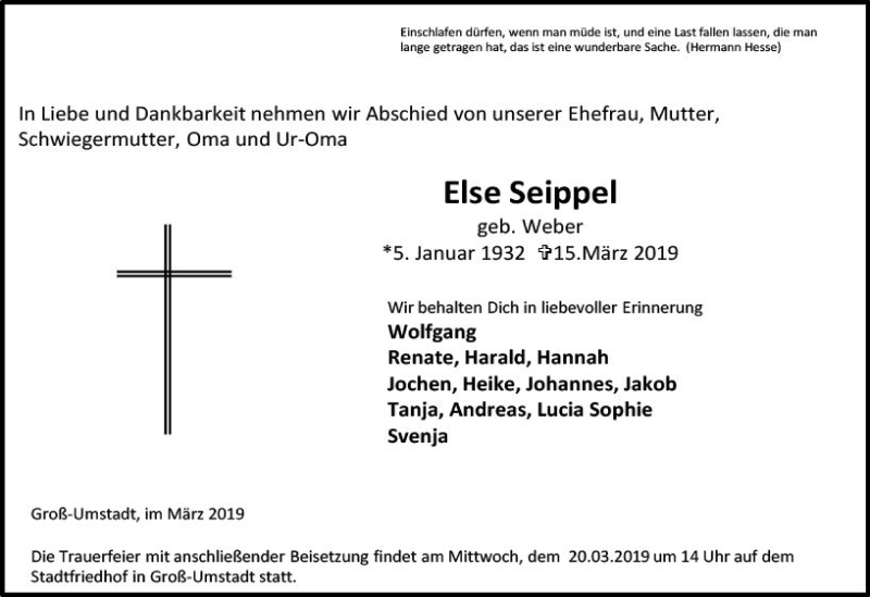 Hier finden Sie alle Traueranzeigen aus der Zeitung, die bisher für Else Seippel erschienen sind. Weitere Traueranzeigen, die in der Zeitung erscheinen, werden hier ebenfalls aufgelistet