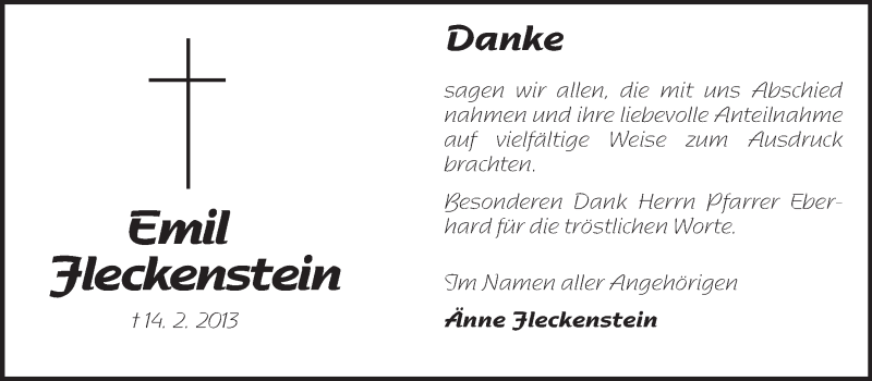 Hier finden Sie alle Traueranzeigen aus der Zeitung, die bisher für Emil Fleckenstein erschienen sind. Weitere Traueranzeigen, die in der Zeitung erscheinen, werden hier ebenfalls aufgelistet