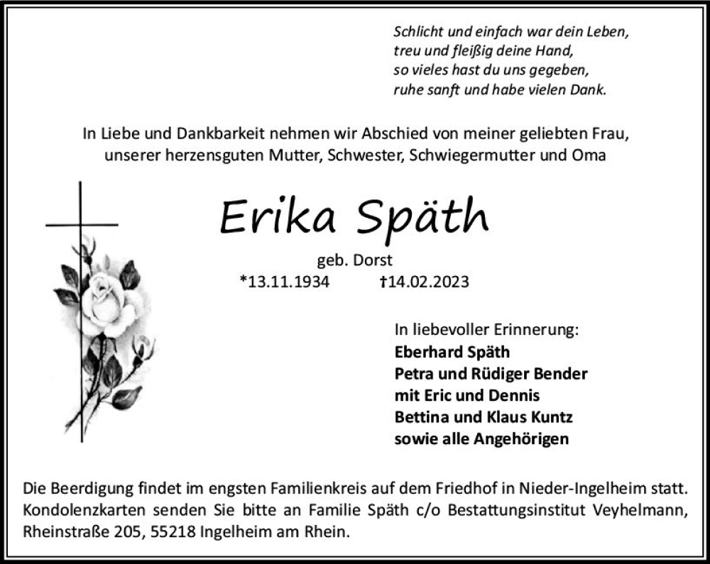 Hier finden Sie alle Traueranzeigen aus der Zeitung, die bisher für Erika Späth erschienen sind. Weitere Traueranzeigen, die in der Zeitung erscheinen, werden hier ebenfalls aufgelistet