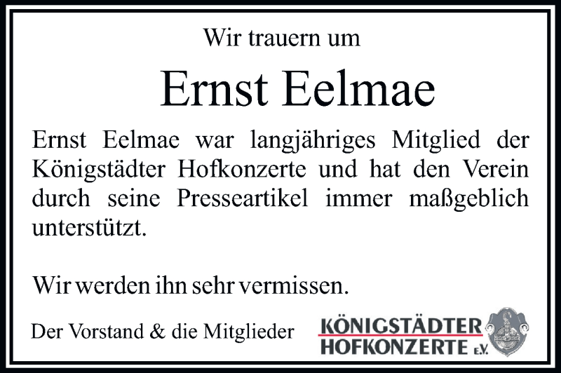 Hier finden Sie alle Traueranzeigen aus der Zeitung, die bisher für Ernst Eelmae erschienen sind. Weitere Traueranzeigen, die in der Zeitung erscheinen, werden hier ebenfalls aufgelistet