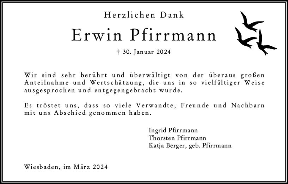 Hier finden Sie alle Traueranzeigen aus der Zeitung, die bisher für Erwin Pfirrmann erschienen sind. Weitere Traueranzeigen, die in der Zeitung erscheinen, werden hier ebenfalls aufgelistet